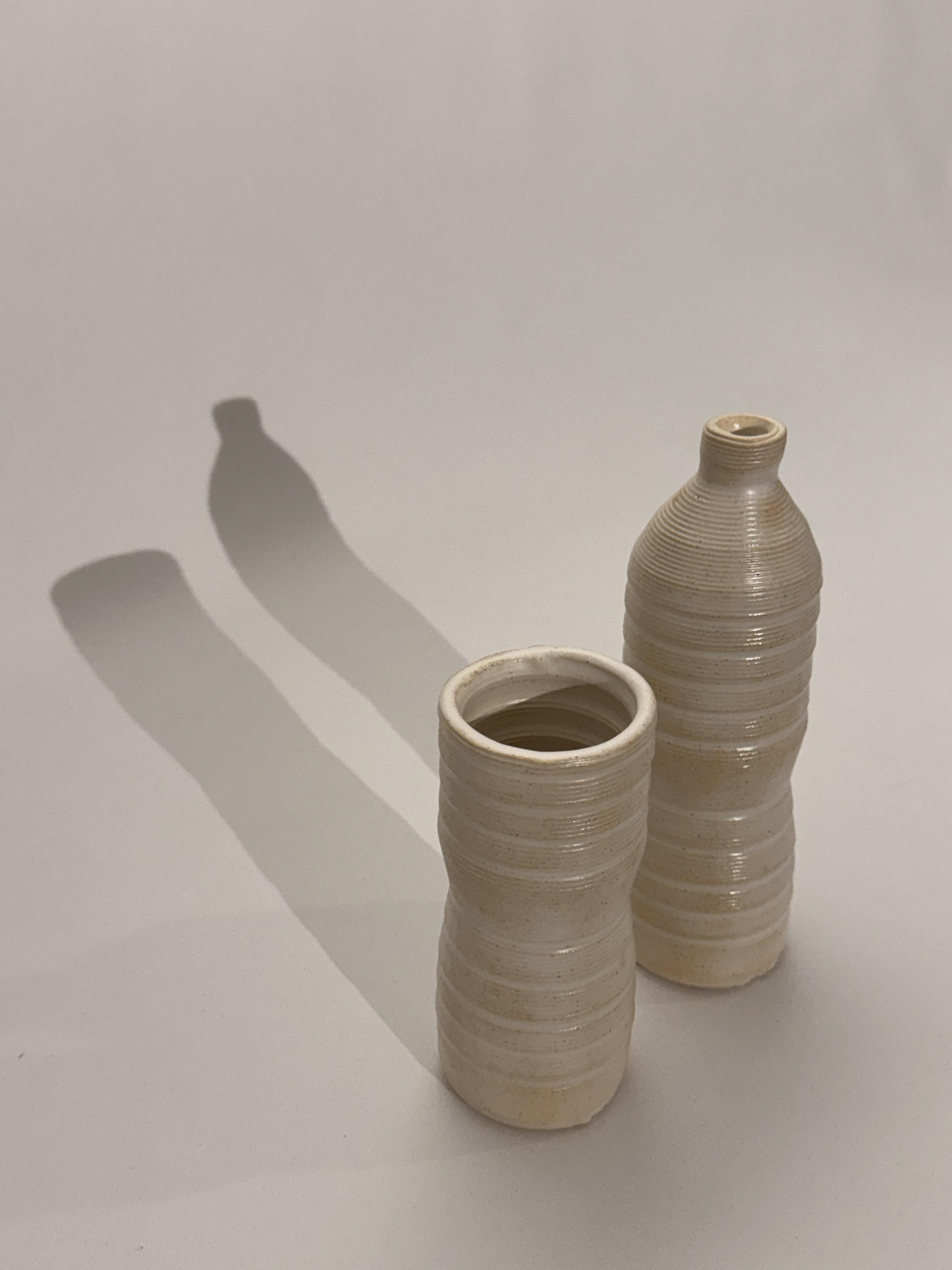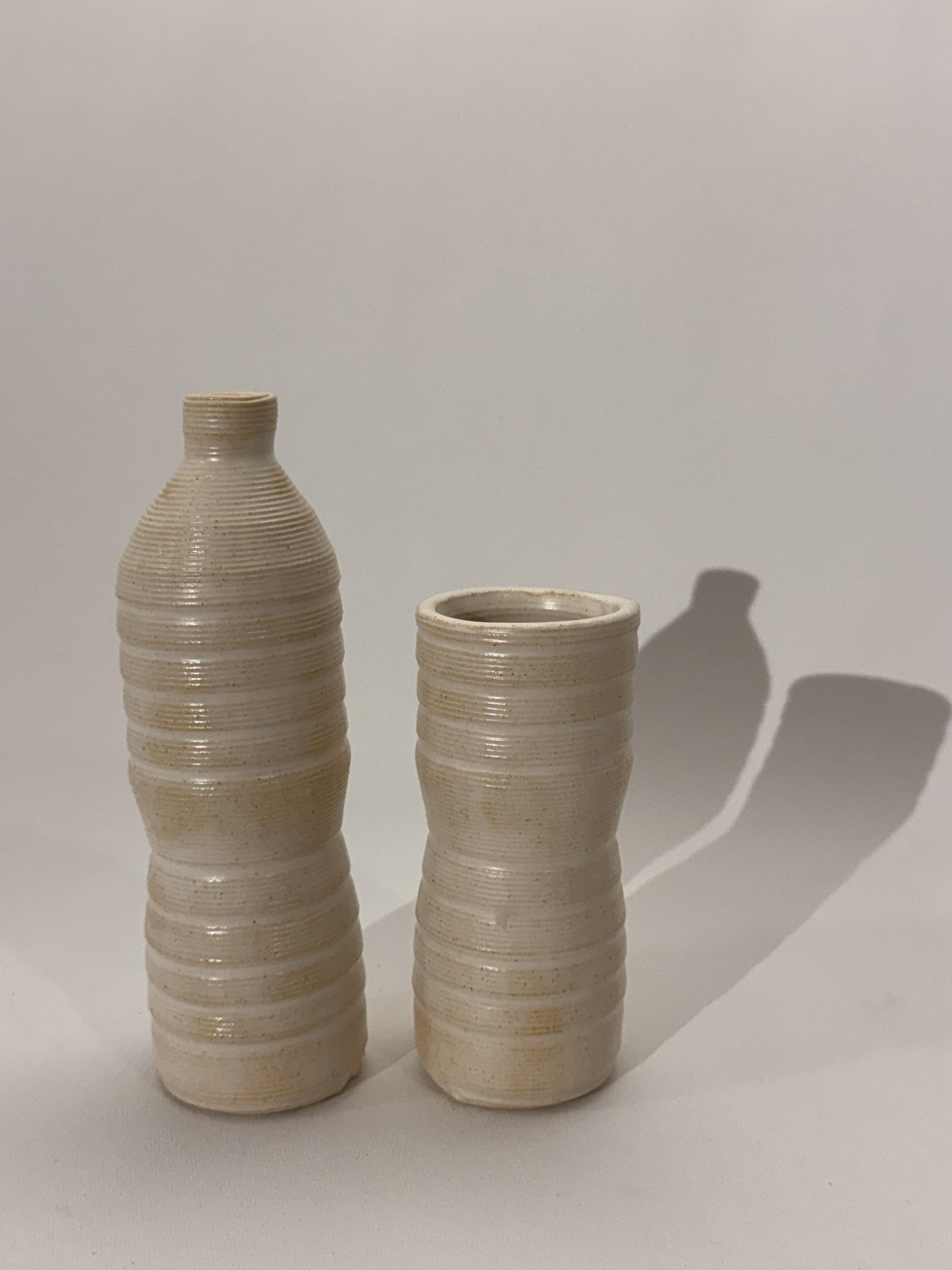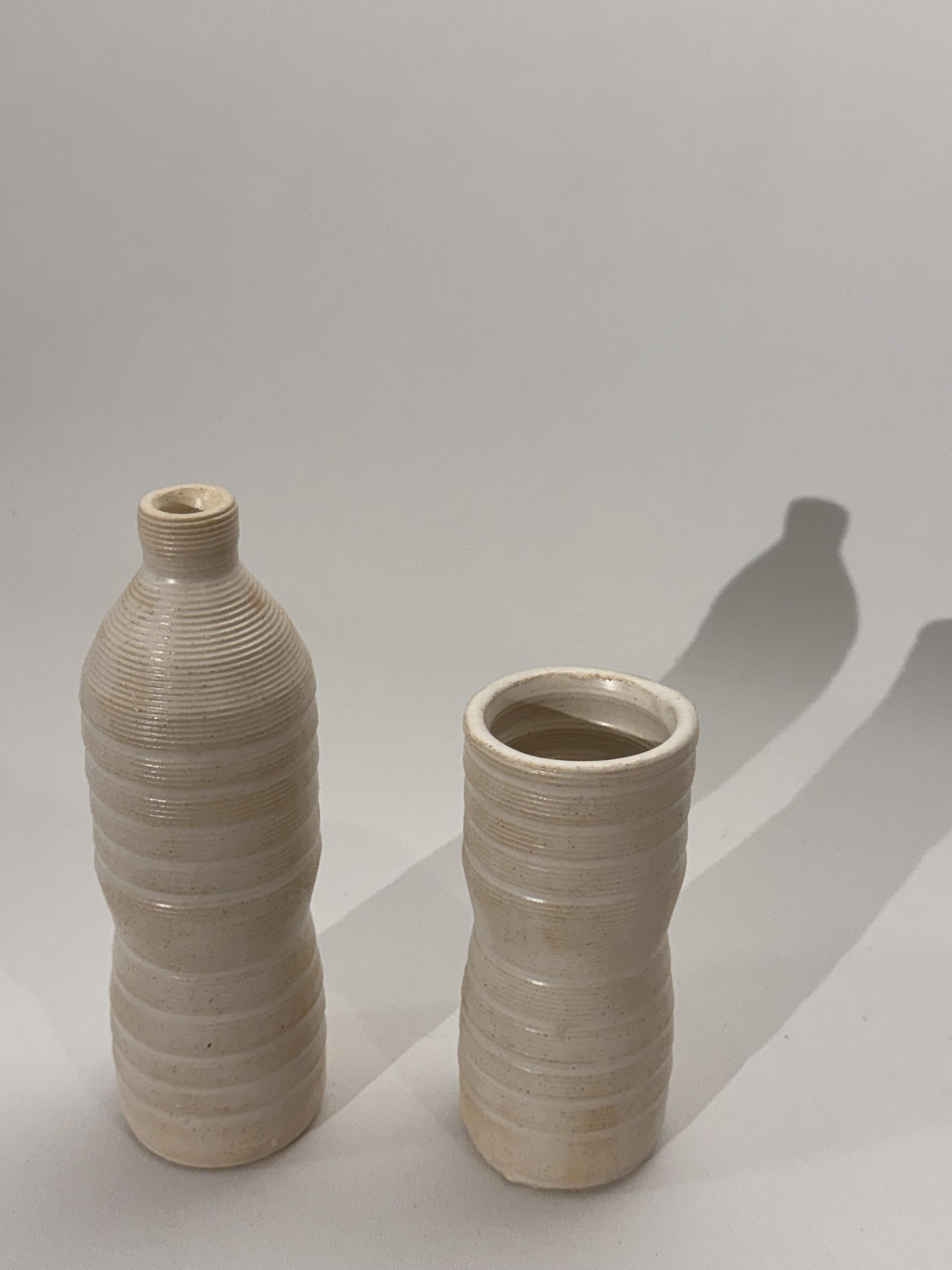 3D printed ceramic in disposable plastic water bottle forms